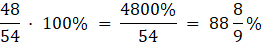W tym zadaniu musisz policzyć, jaką częścią (w procentach) liczby 54 jest 48.
