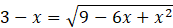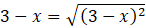 – Rozwiązaniami równania są wszystkie rozwiązania nierówności 3 – x ≥ 0.