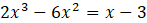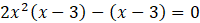 Aby rozwiązać równanie, przenieś wszystkie jednomiany na jedną stronę. Następnie parami pogrupuj wyrazy i wyłącz przed nawias z całego wyrażenia czynnik x – 3. Zapisz alternatywę równań wynikających z obu czynników równania. Rozwiąż osobno każde z równań, a następnie zsumuj rozwiązania do jednego zbioru.