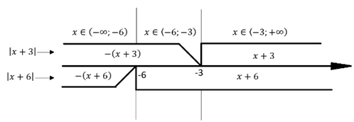 Rozważamy trzy przypadki, w których zapisujemy nierówność bez symbolu wartości bezwzględnej. Rozwiązujemy ją i sprawdzamy, które liczby z otrzymanego przedziału spełniają rozważany warunek, wyznaczając iloczyn przedziału z warunku oraz otrzymanego przedziału z nierówności: