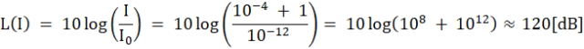 Poziom głośności dźwięku (w decybelach) można obliczyć ze wzoru: