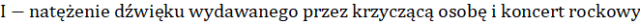 W tym zadaniu musisz udzielić odpowiedzi na pytanie, na jakie natężenie naraża się osobę, która siedzi obok krzyczącego fana na koncercie rocka.