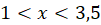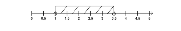Narysuj oś liczbową i zaznacz na niej zbiór liczb większych od 1, ale mniejszych od 3,5. Puste kółko oznacza, że liczba nie spełnia wskazanego warunku.