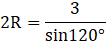Stosunki długości boków do sinusów przeciwległych kątów w dowolnym trójkącie, są równe średnicy okręgu opisanego na tym trójkącie.