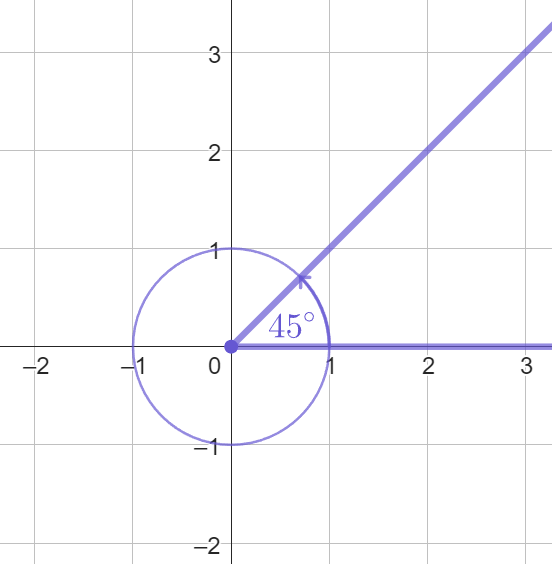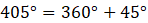 Kąt -405° można zapisać jako: -360° - 45°. Ramie końcowe znajduje się zatem w I ćwiartce układu współrzędnych.