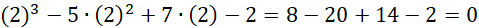 Znajdź pierwiastek całkowity wśród dzielników wyrazu wolnego tj. -2, -1, 1, 2.