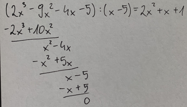 Wiedząc, że 5 jest pierwiastkiem równania na podstawie twierdzenia Bezouta stwierdź, że dany wielomian jest podzielny przez