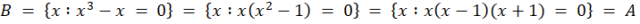 Zgodnie z definicją, zbiory są sobie równe, gdy zawierają dokładnie te same elementy. Rozpisz warunek w definicji zbioru B i pokaż, że jest on równoważny definicji zbioru A, a zatem są sobie równe.