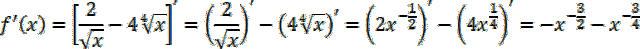 , a następnie określ jej pochodną, a także jej dziedzinę. Wyznacz wartości pochodnej w punktach 1 i 4.