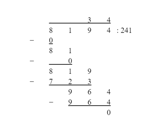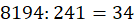 Policz, licząc pod kreską. 8194 : 241