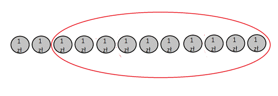 2,5 kg · 3,80 zł/kg = 9,5 zł – potrzeba dziesięciu monet jednozłotowych.