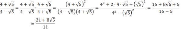 Aby usunąć niewymierność z mianownika musisz skorzystać ze wzoru na różnicę kwadratów a2 – b2 = (a – b)(a + b). Musisz przemnożyć licznik i mianownik ułamka przez mianownik ze zmienionym znakiem między liczbami. W liczniku możesz skorzystać ze wzoru na kwadrat sumy (a + b)2 = a2 + 2ab + b2.