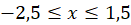 Narysuj oś liczbową i zaznacz na niej zbiór liczb większych lub równych -2,5, ale mniejszych lub równych 1,5. Zamalowane kółko oznacza, że liczba spełnia wskazany warunek.