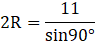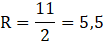 Wylicz długość promienia okręgu opisanego na trójkącie ABC, jeśli wiadomo że c = 11, α = β =