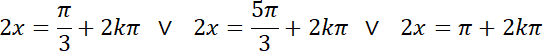 . Rozwiąż równanie kwadratowe, a następnie otrzymane równania trygonometryczne. Na koniec zauważ, że rozwiązania sumują się do zbioru