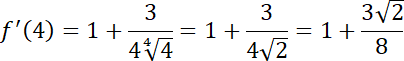 , a następnie określ jej pochodną, a także jej dziedzinę. Wyznacz wartości pochodnej w punktach 1 i 4.