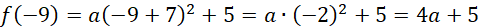 W tym zadaniu należy zapisać wzór funkcji, której wykresem jest parabola o wierzchołku W = (-7, 5) i przechodząca przez punkt P = (-9, 1).