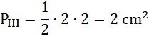 Figura III jest trójkątem. Liczysz, na ilu kratkach narysowana jest podstawa figury oraz jej wysokość. Następnie przeliczasz kratki na centymetry; jedna kratka to 0,5 cm. Podstawiasz wartości do wzoru na pole trójkąta i wykonujesz obliczenia. Wynik podajesz w centymetrach kwadratowych.