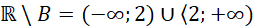 – wszystkie liczby rzeczywiste, które nie należą do zbioru B, czyli dopełnienie zbioru B – w tym przypadku jest to suma zbiorów