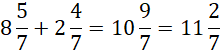 Dodając ułamki zwykłe, dodaj do siebie liczniki, a mianownik w wyniku pozostaw taki jak w składnikach dodawania. Jeśli przed ułamkami są liczby całości, to dodaj je do siebie i zapisz w wyniku ich sumę. Zamieniając ułamek niewłaściwy na liczbę mieszaną, należy podzielić licznik przez mianownik i wynik wpisać jako całości, a resztę jako licznik. Mianownik pozostanie bez zmian.