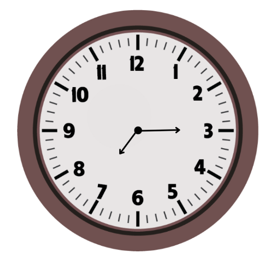 15 min ∶ 5 min = 3, dlatego właśnie tam wskazuje dłuższa wskazówka.