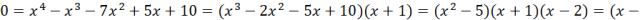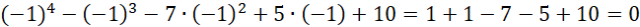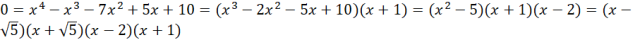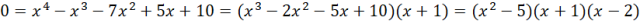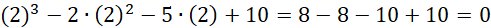 Znajdź pierwiastek całkowity wśród dzielników wyrazu wolnego 10.