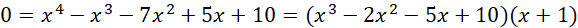 Znajdź pierwiastek całkowity wśród dzielników wyrazu wolnego -10.