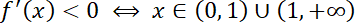Najpierw wyznacz dziedzinę funkcji f oraz określ jej pochodną f’, a także dziedzinę tej pochodnej. Następnie wyznacz miejsca zerowe funkcji pochodnej. Zauważ, że skoro współczynnik a w funkcji liniowej jest ujemny, to jest ona malejąca. Na tej podstawie określ znak pochodnej. Skorzystaj z faktu, że gdy pochodna jest ujemna, to funkcja jest malejąca, a gdy pochodna ma znak dodatni, to funkcja rośnie.