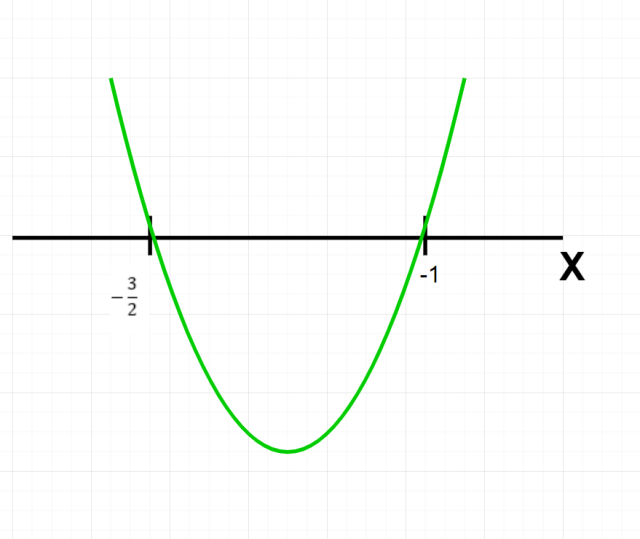 Zaznacz na osi OX rozwiązania równania. Naszkicuj parabolę skierowaną ramionami do góry, przechodzącą przez te punkty. Nie musisz wyznaczać wierzchołka paraboli.