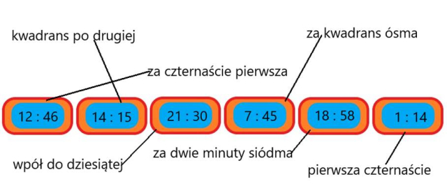 Dopasuj opisy do wskazywanych przez zegary godzin.
