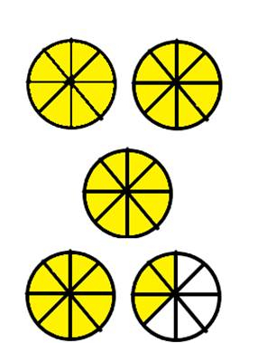 Zamaluj tyle części figury, ile jest w liczniku. Figura jest podzielona na tyle części, ile mówi nam mianownik. Następnie za pomocą rysunku zamień ułamek niewłaściwy na liczbę mieszaną i na odwrót.