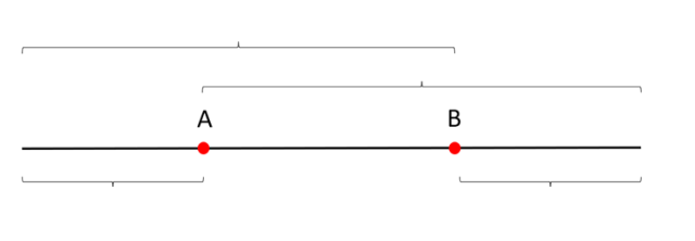 Półprosta to taka prosta, która ma początek, ale nie ma końca. Narysuj 2 punkty i poprowadź przez nie prostą. Wskaż półproste, które można odnaleźć dla tego przykładu.