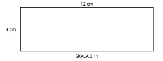 W tym zadaniu musisz zmierzyć przedstawiony prostokąt, a następnie narysować go w zeszycie w skalach 2 : 1 i 1 : 2.