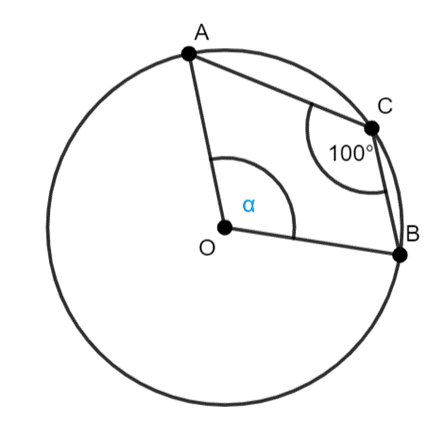 Kąt środkowy wklęsły: |∡AOB| = 2∙100° = 200°