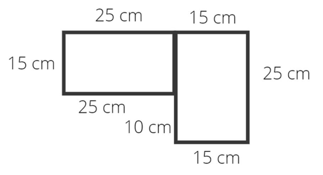 Długość boku 10 cm wynika z różnicy między długościami boków 25 cm i 15 cm.