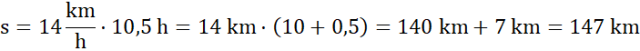 Na początek zapisz wzór na drogę. Wstaw podane wartości i wykonaj mnożenie. Możesz ułatwić sobie liczenie, stosując prawo rozdzielności mnożenia względem dodawania.