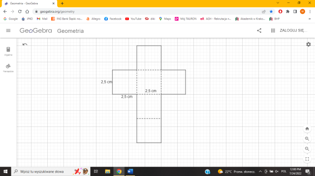 W tym zadaniu musisz narysować siatkę sześcianu o wymiarach 2,5 cm.