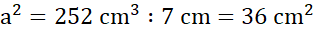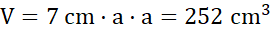 Na początek zapisz objętość prostopadłościanu jako iloczyn trzech poddanych krawędzi. Podziel wynik przez 7 cm. Podaj długość brakującej krawędzi. Pole powierzchni obliczysz, mnożąc pole kwadratowej ściany przez 2, a prostokątnej – przez 4.