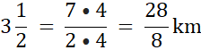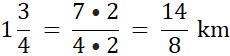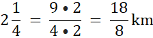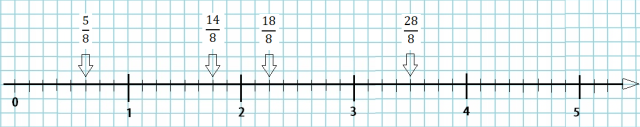 Zamień podane ułamki na ułamki niewłaściwe, następnie rozszerz do 8 w mianowniku.