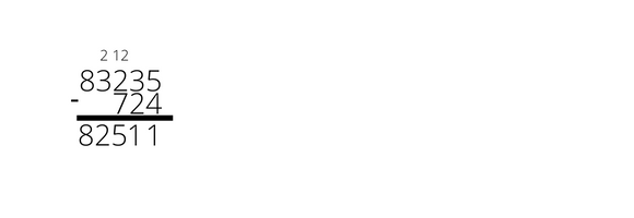 osiemdziesiąt trzy tysiące dwieście trzydzieści pięć to 83235. Siedemset dwadzieścia cztery to 724. Różnica to wynik odejmowania.