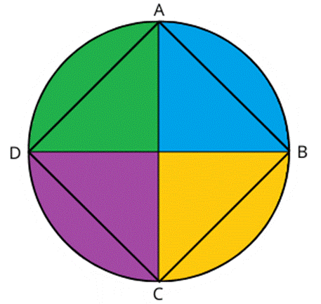 Zauważ, że narysowane przez Ciebie średnice utworzyły przekątne powstałego czworokąta. Ponieważ przecinają się one pod kątem prostym i są równej długości, oznacza to, że powstała figura to kwadrat.