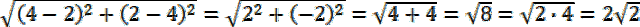 . W celu obliczenia odległości między punktami A(xa, ya) i B(xb, yb) skorzystaj z następującego wzoru: |AB| =