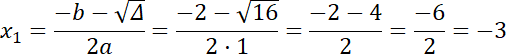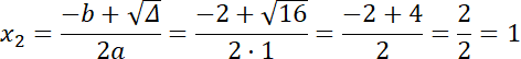 ∆ = b2 – 4ac = 22 – 4 · 1 · (–3) = 16