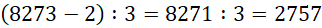 Liczba o 2 mniejsza od 8273 dzieli się przez 3.