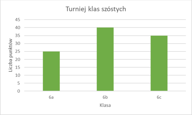 Na osi poziomej zaznaczasz klasy biorące udział w turniej. Na osi pionowej zaznaczasz liczbę punktów. Następnie musisz narysować słupki. Słupek rysujesz na taką wysokość, jaką ilość punktów zdobyła dana klasa.