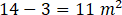 Pole najmniejszego pomieszczenia (pomieszczenie III) w rzeczywistości to 3 m2. Na rysunku pomieszczenie to składa się z 6 kratek. Oznacza to, że 1 m2 w rzeczywistości to dwie kratki na rysunku.