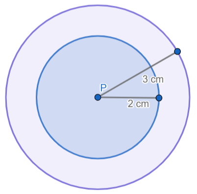 W tym zadaniu musisz narysować dwa koła współśrodkowe o promieniach 2 cm i 3 cm.