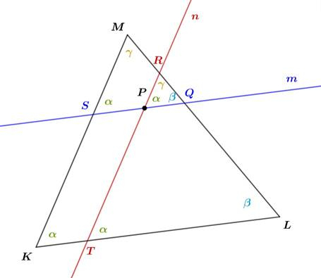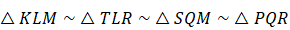 Aby określić, które trójkąty są podobne zastosuj cechę podobieństwa trójkątów kkk, gdzie kąty określ z twierdzenia Talesa.