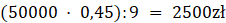 Jest 9 pracowników, więc:
