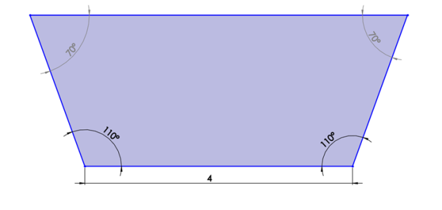 Musisz narysować trapez równoramienny, którego jedna podstawa jest równa 4 cm, a kąty przyległe do niej mają po 110°.